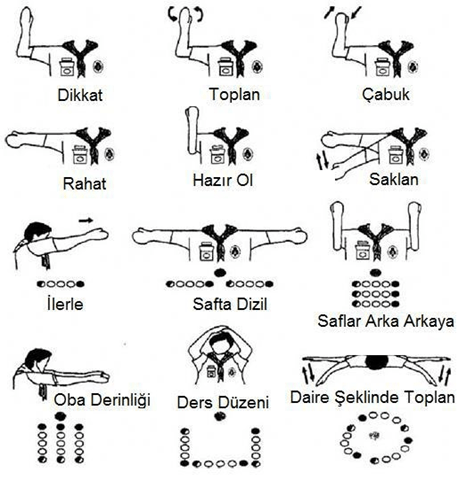 Ses ile iletişimin yetersiz, tehlikeli veya gereksiz olduğu durumlarda kaşifler kol komutları ile anlaşabilir ya da toplan düdüğü ardından lider hangi düzende toplanacaklarını kaşiflere kol komutu ile gösterebilir.